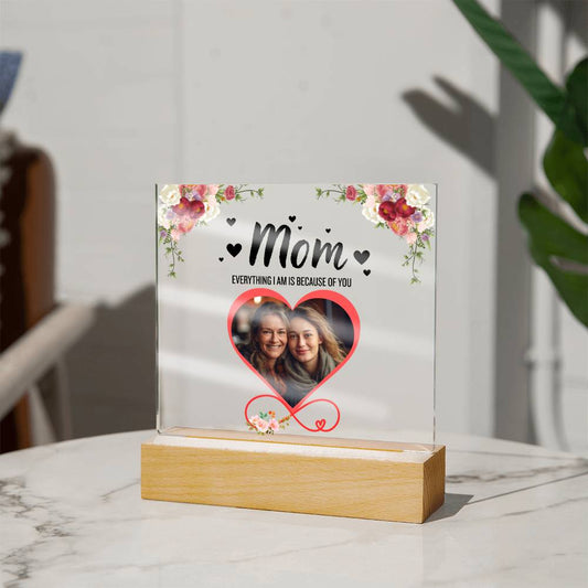 Mom Everything I Am Is Because of You | Personalized Acrylic Plaque | Gift for Mom