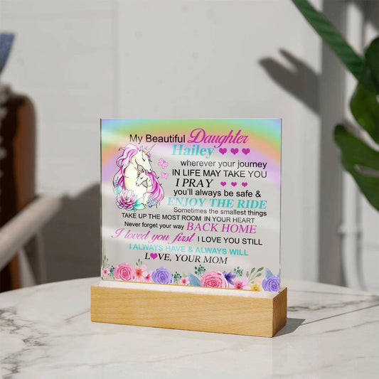 Personalized To My Beautiful Daughter Gift | Unicorn Rainbow Acrylic Plaque Custom Night Light Gift | From Mom