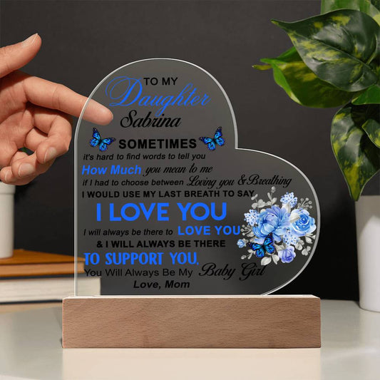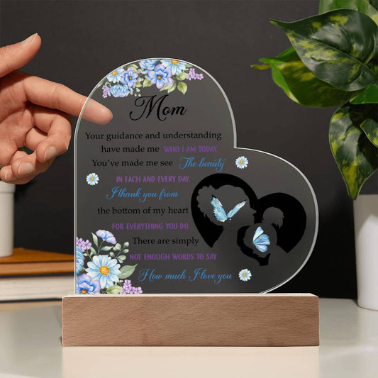 To My Mom Gift | Heart Acrylic Plaque Night Light Gift | Gift for Mom From Daughter